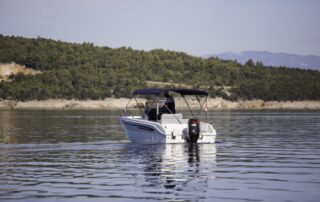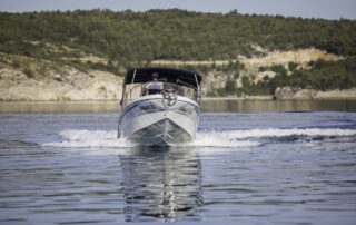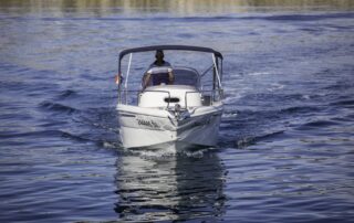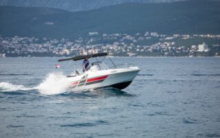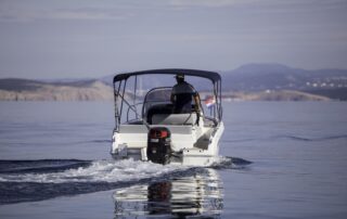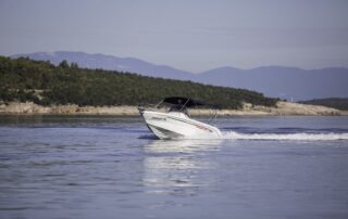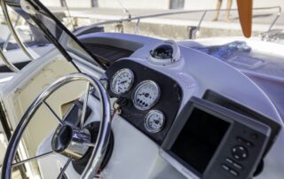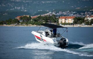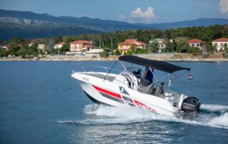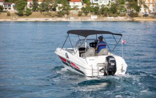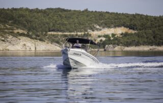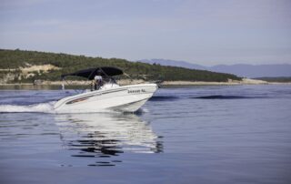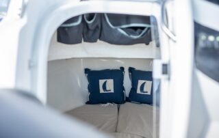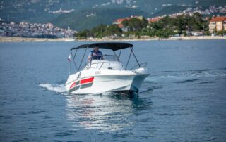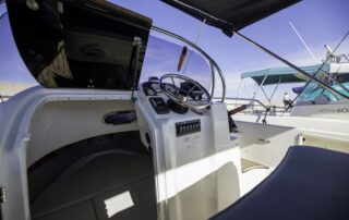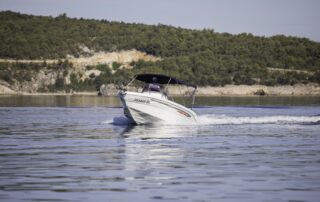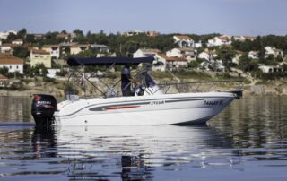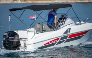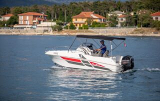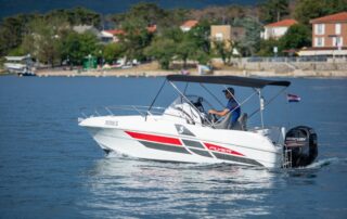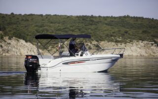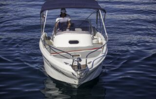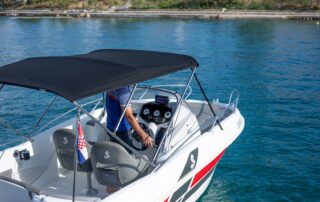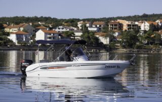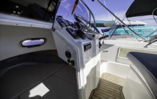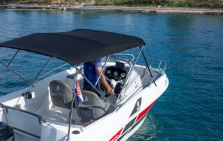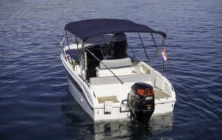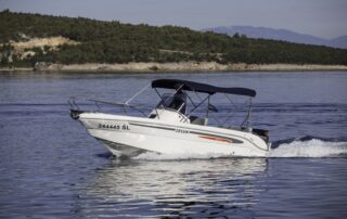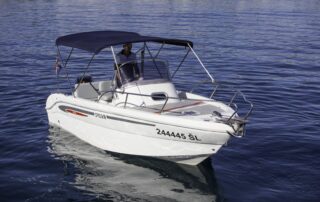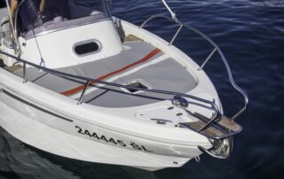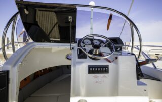 Equipment: bimini top, radio, Garmin maps, refrigerator, electric anchor winch, hydraulic steering wheel, shower (40 liters), first aid, fire extinguisher, life jackets