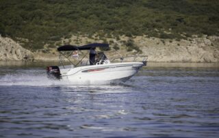 Equipment: sun deck, bimini awning, cushions, ladder, anchor, life jackets, radio, shower, sonar, first aid.