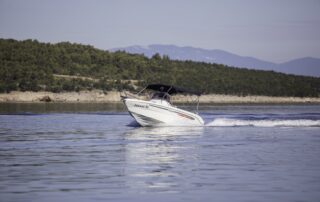 Dotazioni: prendisole, tendalino bimini, cuscineria, scaletta, ancora, giubbotti di salvataggio, radio, doccia, ecoscandaglio, pronto soccorso